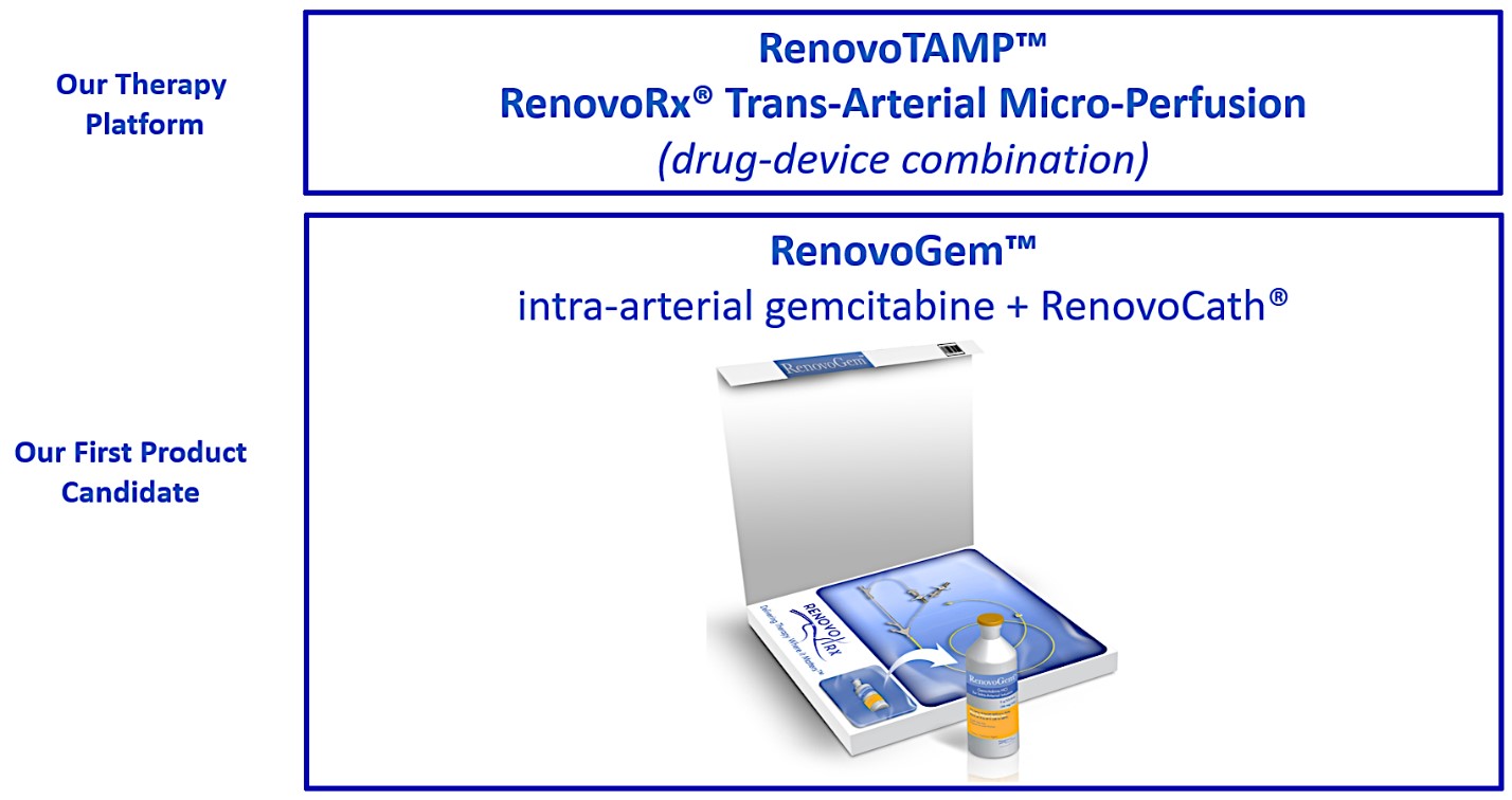 We are a clinical-stage biopharmaceutical company focused on developing therapies for the local treatment of solid tumors and conducting a Phase 3 registrational trial for our lead product candidate RenovoGem™. Our therapy platform, RenovoRx Trans-Arterial Micro-Perfusion, or RenovoTAMP™ utilizes approved chemotherapeutics with validated mechanisms of action and well-established safety and side effect profiles, with the goal of increasing their efficacy, improving their safety, and widening their therapeutic window. RenovoTAMP combines our patented U.S. Food and Drug Administration, or FDA, cleared delivery system, RenovoCath®, with small molecule chemotherapeutic agents that can be forced across the vessel wall using pressure, targeting these anti-cancer drugs locally to the solid tumors. While we anticipate investigating other chemotherapeutic agents for intra-arterial delivery via RenovoTAMP, our clinical work to date has focused on gemcitabine, which is a generic drug . Our first product candidate, RenovoGem, is a drug and device combination consisting of intra-arterial gemcitabine and RenovoCath. FDA has determined that RenovoGem will be regulated as, and if approved we expect will be reimbursed as, a new oncology drug product. We have secured FDA Orphan Drug Designation for RenovoGem in our first two indications: pancreatic cancer and cholangiocarcinoma (bile duct cancer, or CCA) . We have completed our RR1 Phase 1/2 and RR2 observational registry studies, with 20 and 25 patients respectively, in locally advanced pancreatic cancer, or LAPC. These studies demonstrated a median overall survival of 27.9 months in patients treated with RenovoGem and radiation versus expected survival of 12-15 months in patients receiving only intravenous (IV) systemic chemotherapy dosed at 1,000mg/m2 based on historical control data. Unlike the historical controls, our RR1 and RR2 studies were not randomized or controlled for potential confinement. Based on FDA safety review of our Phase 1/2 study the FDA allowed us to proceed to evaluate RenovoGem within our Phase 3 registration Investigational New Drug, or IND, clinical trial. Our Phase 3 trial is 40% enrolled as of April 30, 2021 and we expect to report data from a planned interim data readout in the second half of 2022. We intend to evaluate RenovoGem in a second indication in a Phase 2/3 trial in hilar CCA (cancer that occurs in the bile ducts that lead out of the liver and join with the gallbladder, also called extrahepatic cholangiocarcinoma, or HCCA). We plan to propose the trial to the FDA and potentially launch in the first half of 2022. In addition, we may evaluate RenovoGem in other indications, potentially including locally advanced lung cancer, locally advanced uterine tumors, and glioblastoma (an aggressive type of cancer that can occur in the brain or spinal cord). To date, we have used gemcitabine, but in the future we may develop other chemotherapeutic agents for intra-arterial delivery via RenovoCath.