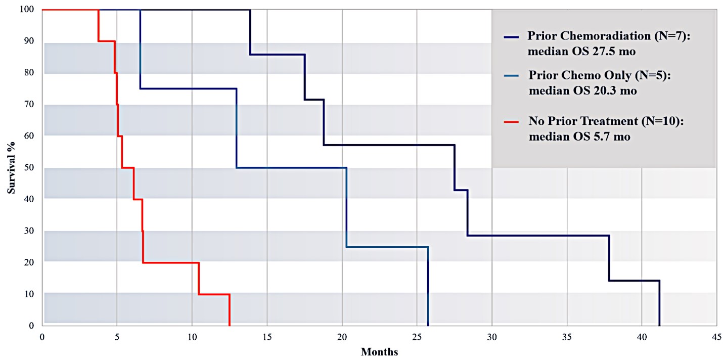 For our initial indication, LAPC, we have completed two studies. We launched RR1, our first-in-human, dose escalation, Phase 1/2 safety study in May 2015 to evaluate our RenovoTAMP platform by delivering intra-arterial gemcitabine via our patented RenovoCath delivery system. In this safety study, 20 patients with a diagnosis of Stage 3 pancreatic cancer were enrolled. We established the maximum tolerated dose of 1000mg/m2 of intra-arterial gemcitabine delivered via RenovoCath. The most common serious adverse events were neutropenia followed by sepsis. After completion of enrollment and demonstration of an early survival efficacy signal in this study, we launched our RR2 observational registry study in June 2016. The key inclusion criteria was a diagnosis of advanced or borderline resectable pancreatic adenocarcinoma confirmed by histology or cytology. The primary endpoints were survival, tumor response and performance of RenovoCath. A combination analysis of these two studies demonstrated that survival in “all comers” (n=31) receiving at least one cycle (two treatments over one month) was 29% at two years. Looking at the prior-radiation therapy subset (n=10), 24-month survival was 60% with a median overall survival (mOS) of 27.9 months. This compares favorably both to IV chemotherapy alone, with 24-month survival of 12%, and to chemotherapy + radiation with 24-month survival of 5% and mOS of 12-15 months as demonstrated in historical studies.