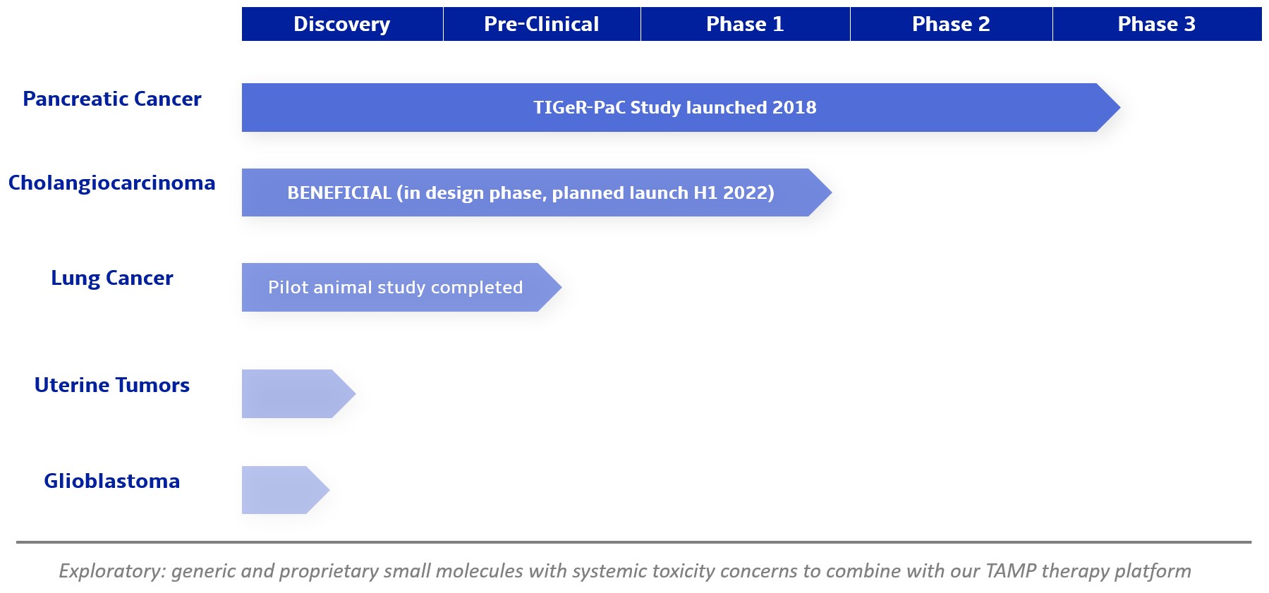 We intend to submit our proposed Phase 2/3 clinical trial to evaluate RenovoGem in HCCA, BENEFICIAL, to the FDA as part of a pre-IND submission in the fourth quarter of 2021 and to launch the clinical trial in the first half of 2022. Intra-venous (IV), or systemic, delivery of gemcitabine has been considered standard of care for several solid tumors, and the drug’s anti-cancer tumor effects are well profiled. We intend to explore the application of our RenovoTAMP platform in additional indications including locally advanced lung cancer, locally advanced uterine cancer, and glioblastoma. We have completed and presented data on a lung cancer application in pre-clinical studies, and additional pre-clinical experiments in lung cancer may be conducted. Beyond our initial anti-cancer product candidate, RenovoGem, multiple small molecule therapeutics could be incorporated into our RenovoTAMP platform, and we will opportunistically look to develop other potential product candidates.