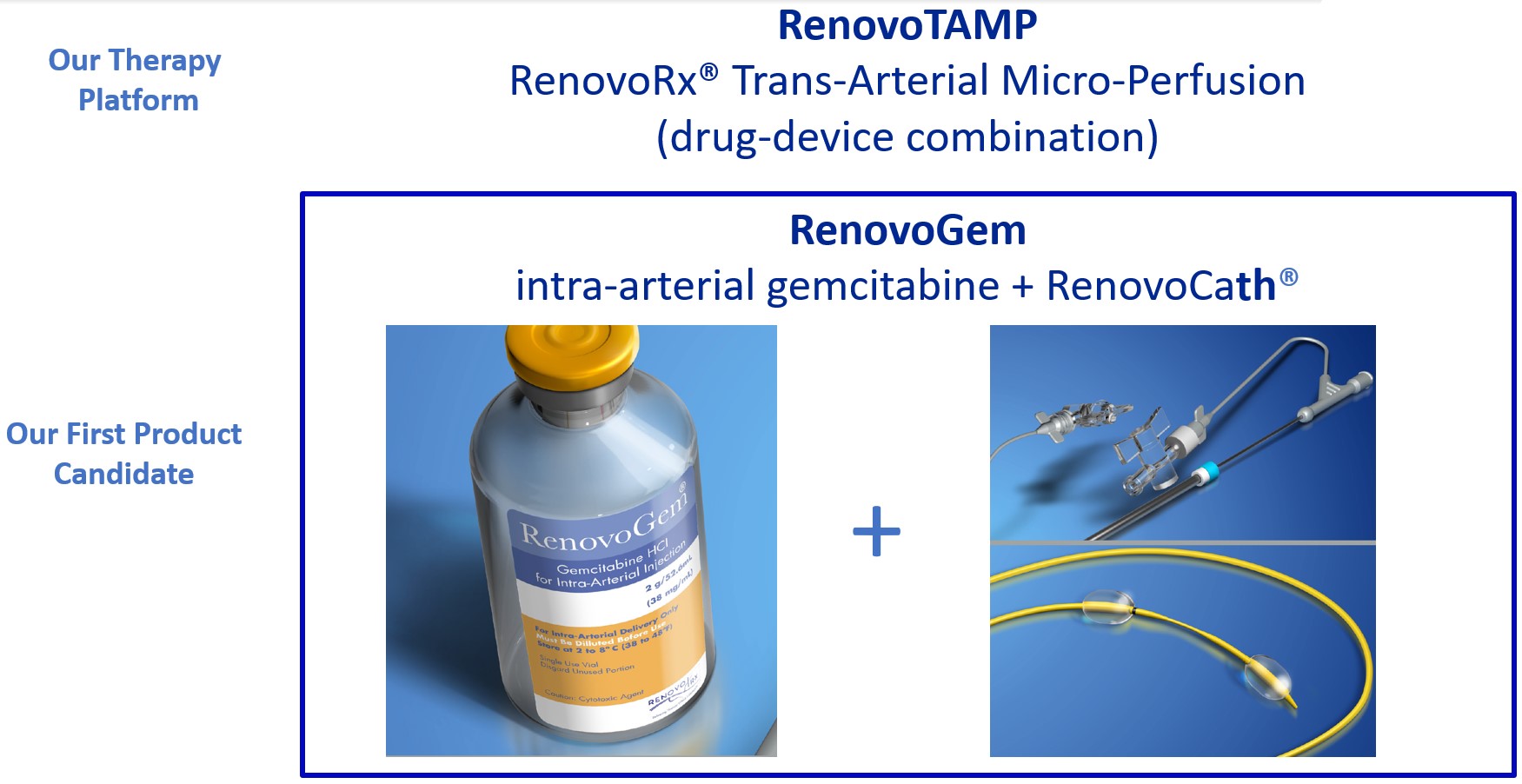 We are a clinical-stage biopharmaceutical company focused on developing therapies for the local treatment of solid tumors and conducting a Phase 3 registrational trial for our lead product candidate RenovoGem™. Our therapy platform, RenovoRx Trans-Arterial Micro-Perfusion, or RenovoTAMP™ utilizes approved chemotherapeutics with validated mechanisms of action and well-established safety and side effect profiles, with the goal of increasing their efficacy, improving their safety, and widening their therapeutic window. RenovoTAMP combines our patented U.S. Food and Drug Administration, or FDA, cleared delivery system, RenovoCath®, with small molecule chemotherapeutic agents that can be forced across the vessel wall using pressure, targeting these anti-cancer drugs locally to the solid tumors. While we anticipate investigating other chemotherapeutic agents for intra-arterial delivery via RenovoTAMP, our clinical work to date has focused on gemcitabine, which is a generic drug. Our first product candidate, RenovoGem, is a drug and device combination consisting of intra-arterial gemcitabine and RenovoCath. FDA has determined that RenovoGem will be regulated as, and if approved we expect will be reimbursed as, a new oncology drug product. We have secured FDA Orphan Drug Designation for RenovoGem in our first two indications: pancreatic cancer and cholangiocarcinoma (bile duct cancer, or CCA). We have completed our RR1 Phase 1/2 and RR2 observational registry studies, with 20 and 25 patients respectively, in locally advanced pancreatic cancer, or LAPC. These studies demonstrated a median overall survival of 27.9 months in patients treated with RenovoGem and radiation. Based on previous large randomized clinical trials, the expected survival of LAPC patients is 12-15 months in patients receiving only intravenous (IV) systemic chemotherapy or IV chemotherapy plus radiation (which are both considered standard of care). Unlike the randomized trials that established these standard-of-care results, our RR1 and RR2 clinical trials did not prospectively control the standard of care therapy received prior to RenovoTAMP. Based on FDA safety review of our Phase 1/2 study the FDA allowed us to proceed to evaluate RenovoGem within our Phase 3 registration Investigational New Drug, or IND, clinical trial. Our Phase 3 trial is 44% enrolled as of August 15, 2021 and we expect to report data from a planned interim data readout in the second half of 2022. We intend to evaluate RenovoGem in a second indication in a Phase 2/3 trial in hilar CCA (cancer that occurs in the bile ducts that lead out of the liver and join with the gallbladder, also called extrahepatic cholangiocarcinoma, or HCCA). We plan to propose the trial to the FDA and potentially launch in the first half of 2022. In addition, we may evaluate RenovoGem in other indications, potentially including locally advanced lung cancer, locally advanced uterine tumors, and glioblastoma (an aggressive type of cancer that can occur in the brain or spinal cord). To date, we have used gemcitabine, but in the future we may develop other chemotherapeutic agents for intra-arterial delivery via RenovoCath.