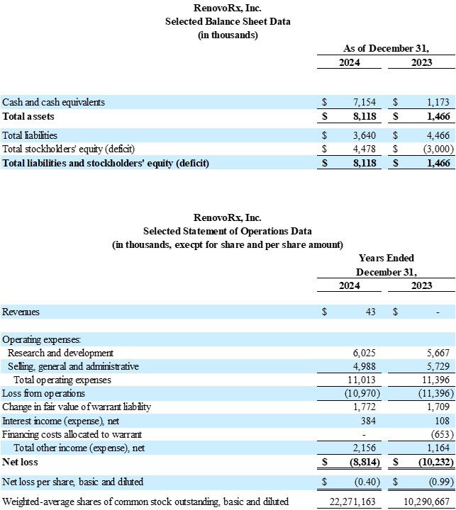Additional information regarding RenovoRx’s business and results of operations for 2024 can be found in its Annual Report on Form 10-K for the fiscal year ended December 31, 2024, which was filed with the SEC on March 31, 2025.